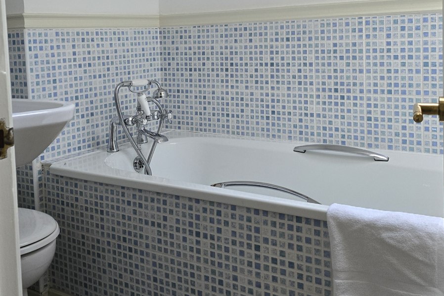 The Luxury Garden Suite is our top accommodation, this spacious suite has 3ft 6ins twin beds or use as a 7ft. double bed. En-suite bathroom with separate shower. Patio doors open out onto a secluded private garden area. Has interior access to the public rooms, but also there is a separate entrance at back of house. This can be useful for dog owners.