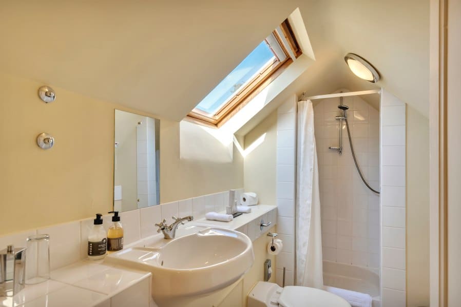 Room Twelve is a Master hotel guest room, with a 6ft double bed (can be twin too), as shown here (can also be twin). Plus a bathroom with separate shower cubicle. Has interior access to the public rooms, but also there is a separate entrance at back of house. This can be useful for dog owners. Good views to the back of the house.